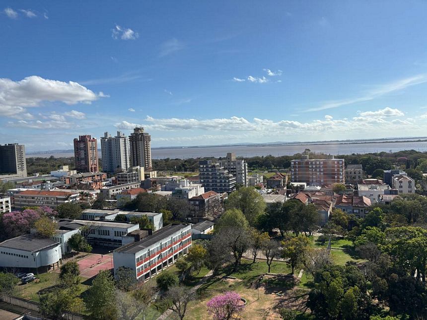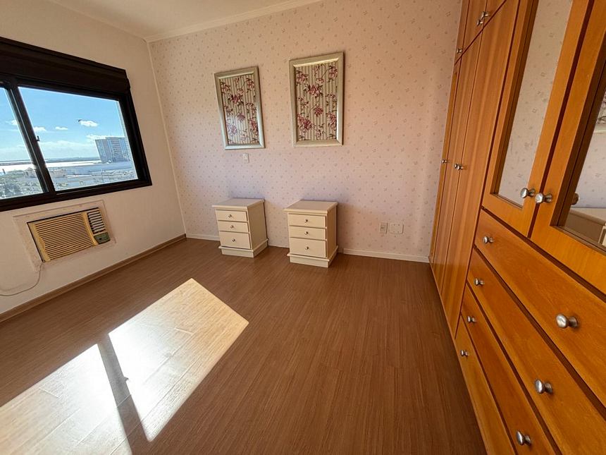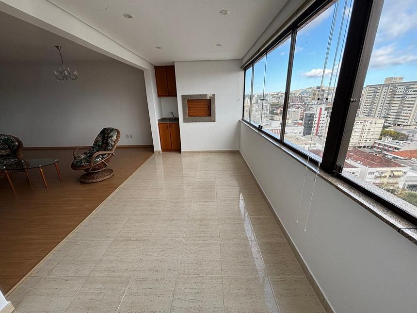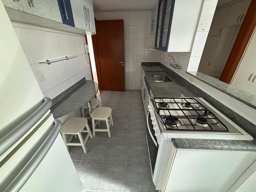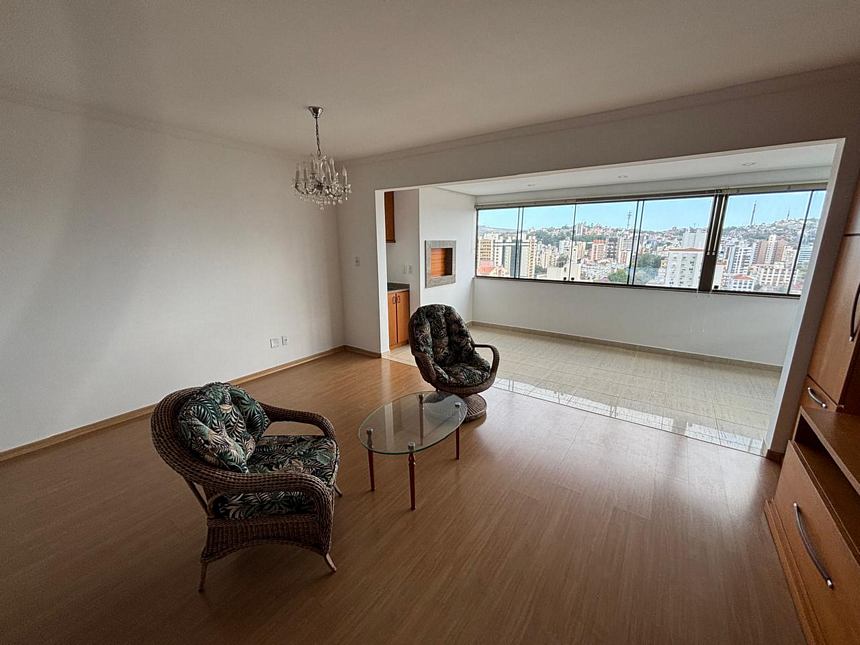 Excelente apartamento em andar alto com ótima vista panorâmica, semi mobiliado com 3 dormitórios transformado em 2 sendo 1 suíte, living amplo com sacada integrada e com churrasqueira, banheiro social, ampla cozinha mobiliada, área de serviço com aquecedor de passagem, banheiro auxiliar + box para 2 carros. Prédio com portaria 24 hrs, salão de festas, playground e jardim.