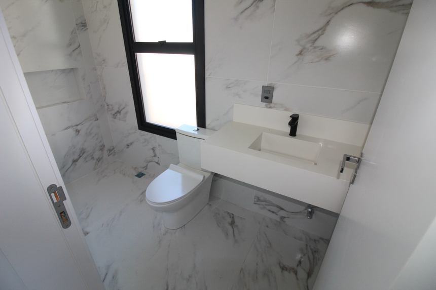 Linda casa de frente em pequeno condomínio com 3 dormitórios ambos suítes, living para 3 ambientes com piso em porcelanato, lareira e ampla sacada frontal e lateral, cozinha americana integrada ao living, churrasqueira, lavabo, ampla lavanderia e garagem para 2 carros + o direito de uso de um pátio frontal. Alguns diferenciais: todas as escadas revestidas em mármore travertino, cortinas dos quartos automatizadas, piso porcelanato colocado na área social e na garagem e baixo custo de condomínio. estuda receber um bom imóvel em dação.