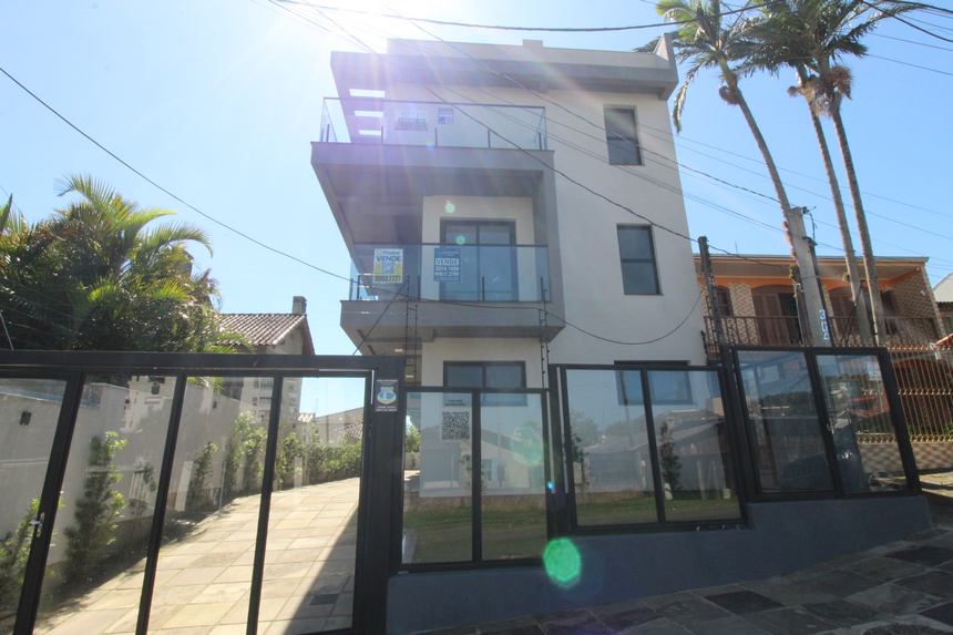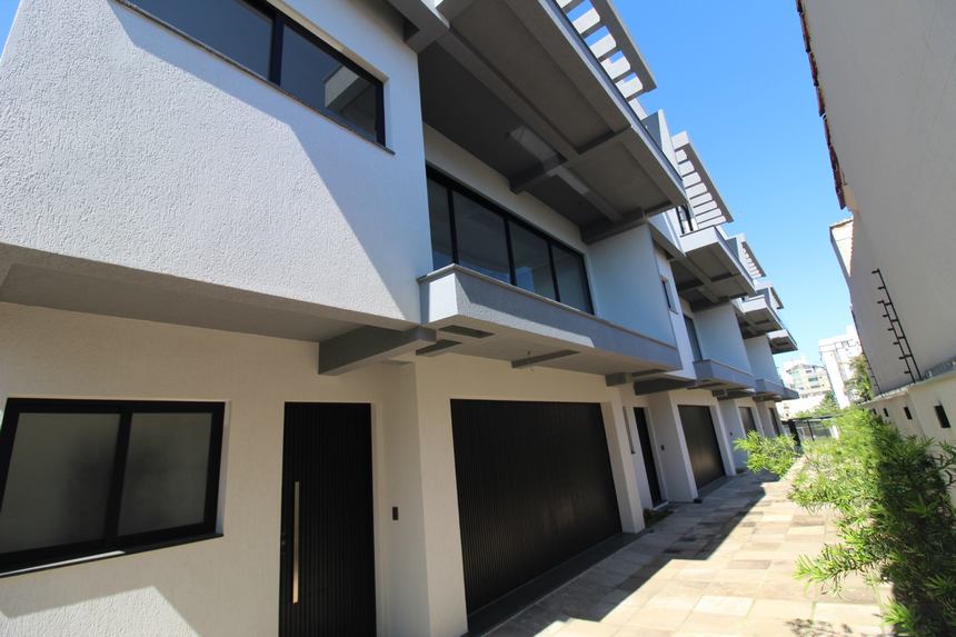 Linda casa de ótima qualidade em pequeno condomínio com apenas quatro unidades; sobrado com 3 dormitórios ambos suítes, duas com sacada, living para 3 ambientes com piso em porcelanato ja colocado, lareira instalada e ampla sacada, cozinha americana integrada ao living e com churrasqueira, lavabo, ampla lavanderia, garagem para 2 carros + um pátio de uso privativo, onde dá para colocar mais dois carros. Alguns diferenciais: todas as escadas revestidas em mármore travertino, cortinas dos quartos automatizadas, piso porcelanato colocado na área social e na garagem e baixo custo de condomínio. estuda receber um bom imóvel em dação.